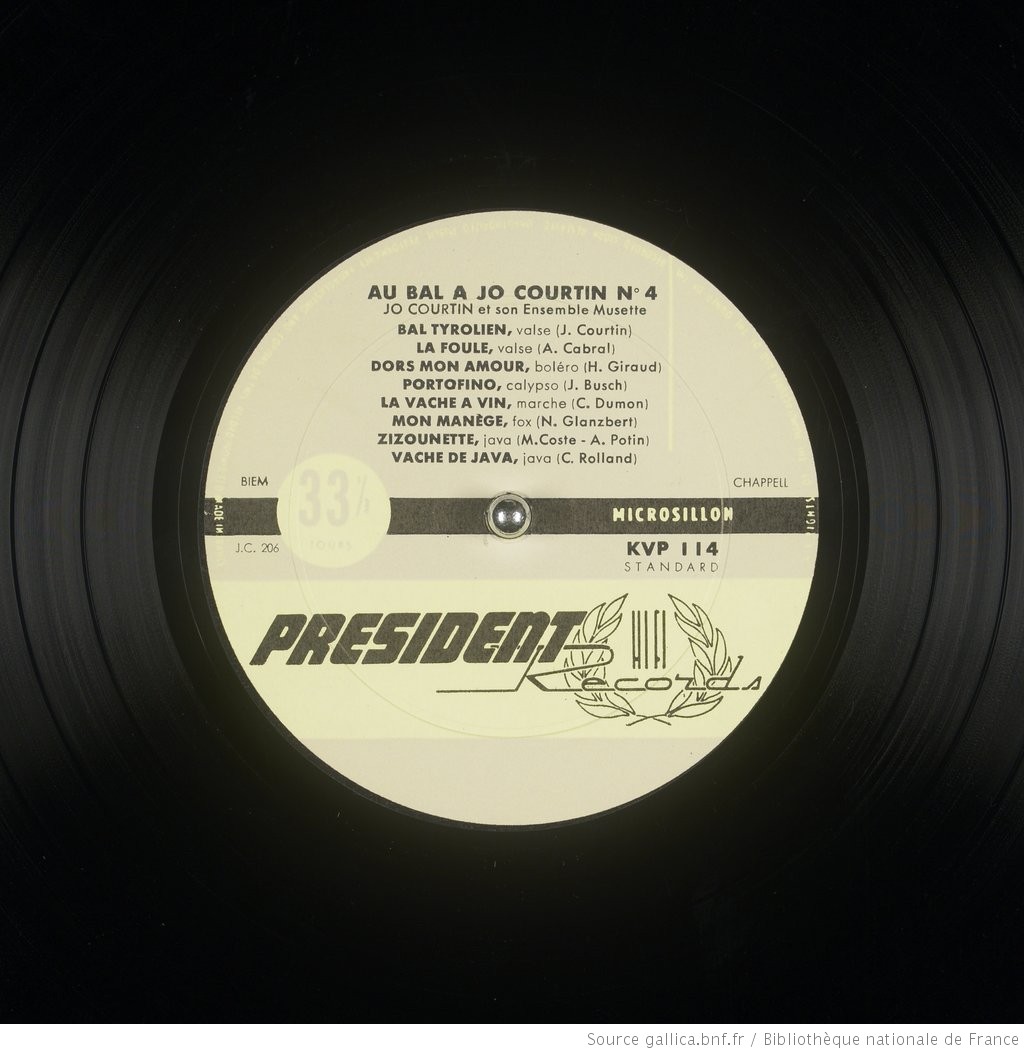 Jo Courtin et son orchestre – Au bal à Jo Courtin, no. 4 Deja un comentario / Por Toni / 30 agosto 2021 16 canciones Colonel Bogey Rose d’or Ay! Torero Bon voyage Gondolier Je t’ai reconnue Rue Jouvenet Retour de Carvin Bal tyrolien La foule Dors mon amour Portofino La vache à vin Mon manège Zizounette Vache de java